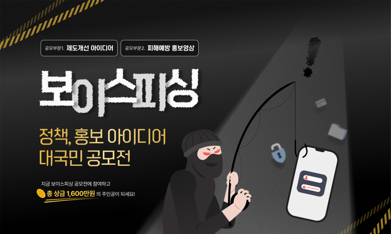금융위원회와 금융감독원은 9월 24일부터 10월 31일까지 전 국민을 대상으로 ‘보이스피싱 정책·홍보 아이디어 공모전’을 개최합니다. 이번 공모전은 지난 7월 열린 ‘보이스피싱 근절 현장간담회’에 이어 국민의 목소리를 폭넓게 듣고 정책 개선에 반영하기 위해 마련됐는데요, 개인 자격으로 누구나 참여할 수 있으며, 정책과 홍보 두 부문에서 응모가 가능합니다.